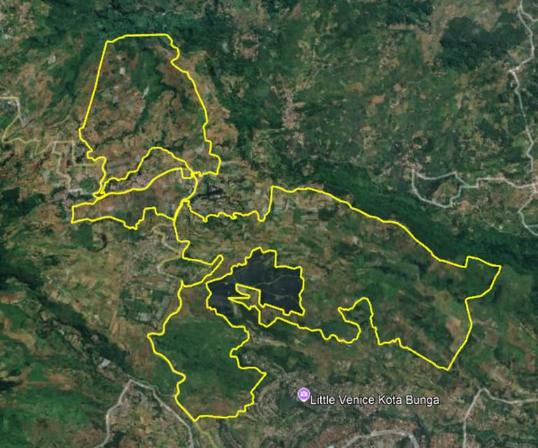 Kontur tanahnya menurun dari barat ke timur. Ketinggian tertinggi di sisi barat melebihi 1200 meter, sementara ketinggian terendah di sisi timur kurang dari 1000 meter. Total luas area PT. Sentul Digital Park adalah 429 Hektar